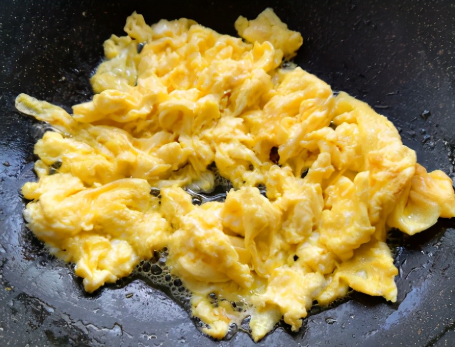 3、炒鸡蛋油要稍微多一点,为了避免鸡蛋变老,建议先将炒至凝固的鸡蛋盛出来,待将毛豆炒好后再重新放回鸡蛋,因为毛豆事先焯过水,已经是半熟或者是全熟的,因此炒菜不需要花费太多的时间,快速炒好便可出锅。