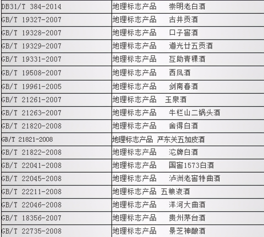 还有一些白酒,属于“国家地理标志产品”,产品执行标准号又不一样,可以参考下图: