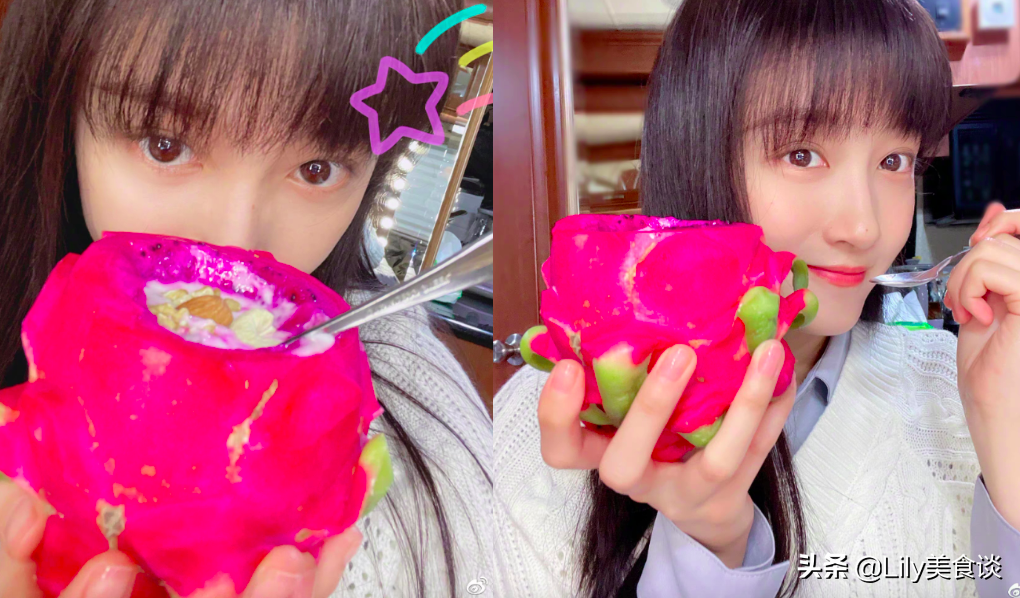 前不久关晓彤在分享自己的春季营养减肥餐时,就有特别提到了自己特别爱吃的小午茶小零食:酸奶红心火龙果。