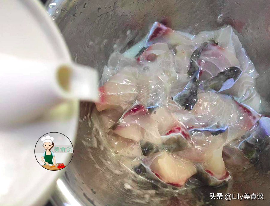 1、鱼肉洗净切片,加入少许盐和生粉抓洗一下,然后冲洗干净。加入少许的胡椒粉、一个鸡蛋清、少许的食用油。