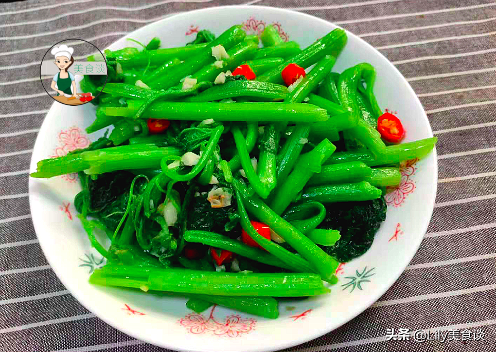 南瓜藤的吃法也有很多,凉拌、清炒、烧汤都是很赞的。需要注意的是南瓜藤的表皮有一层绒毛,我们需要先撕掉,撕干净一些,这样吃起来口感更好。我平时在炒南瓜藤的时候,都习惯先焯水一下再炒,这样炒出来的南瓜藤色泽翠绿诱人,口感也很好。如果直接炒则需要加入少许的水煮一下,煮熟即可。搭配点小米辣和蒜蓉一起炒,清香开胃又下饭。女人想要苗条一点,这菜不妨多吃,高纤维低热量,美肤瘦身正当季。下面是详细的做法。