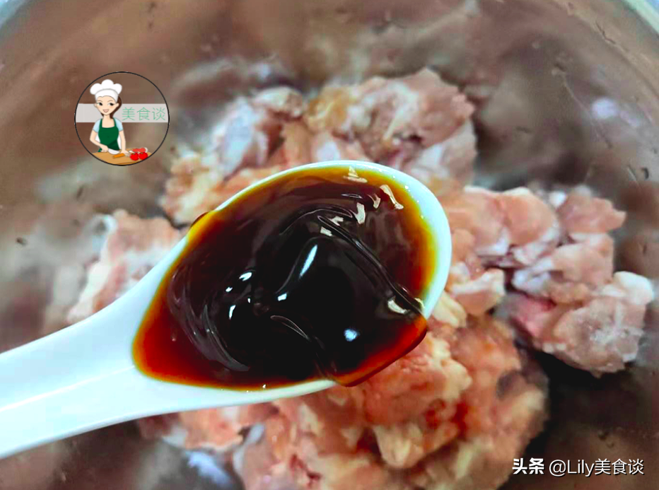 2、洗净的排骨提前加入配料拌匀腌制30分钟入味(冰箱冷藏腌制),加入少许的生粉和油,这样可以让排骨锁住水分口感更嫩滑多汁。
