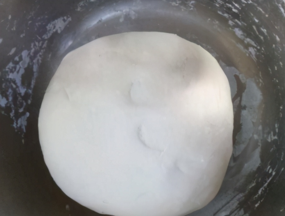 第四步,淋入一勺食用油拌好,面团擀成饺子皮,饺子皮擀好后,再向韭菜馅中加上食盐调味,混合搅拌均匀,馅料便做好了,放入饺子皮中捏好;