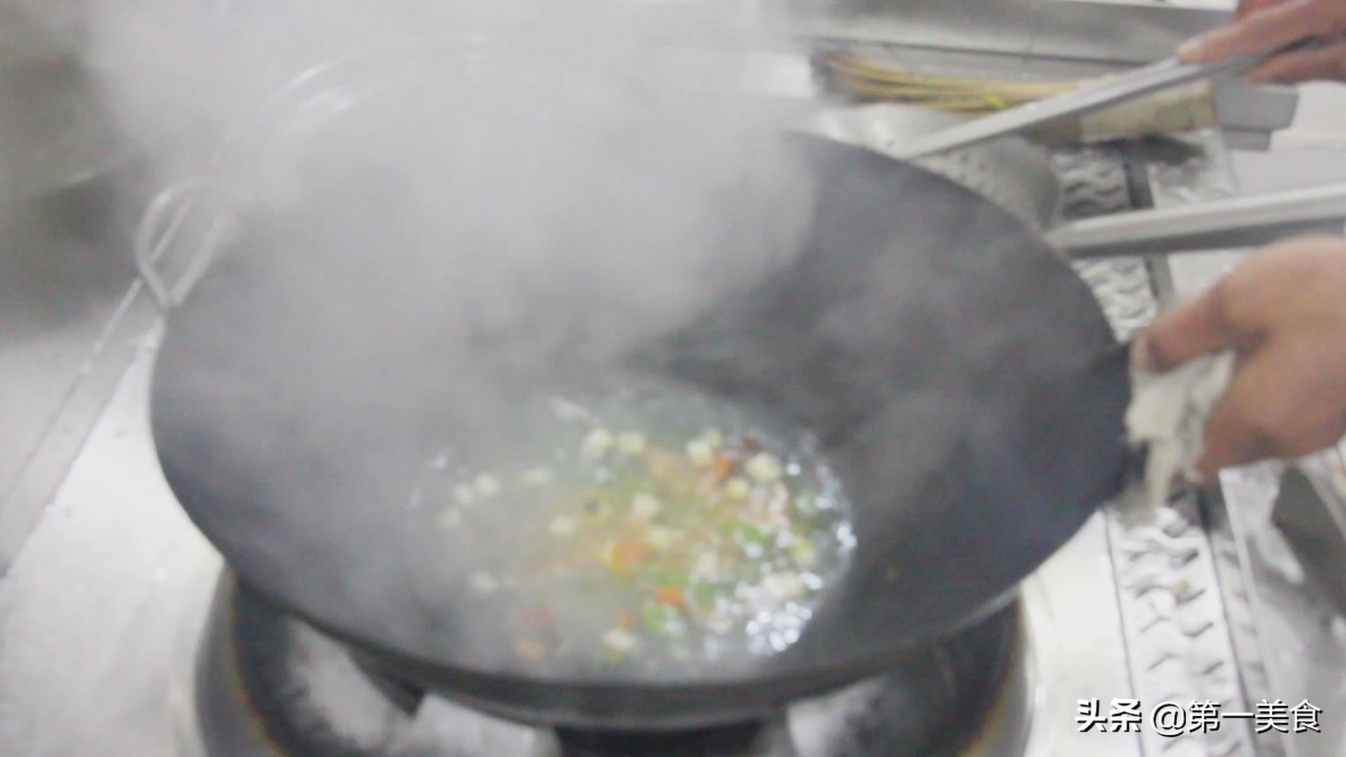 第五步:再次把水烧开,放入准备好的配菜,在水中焯10秒后捞出沥水。