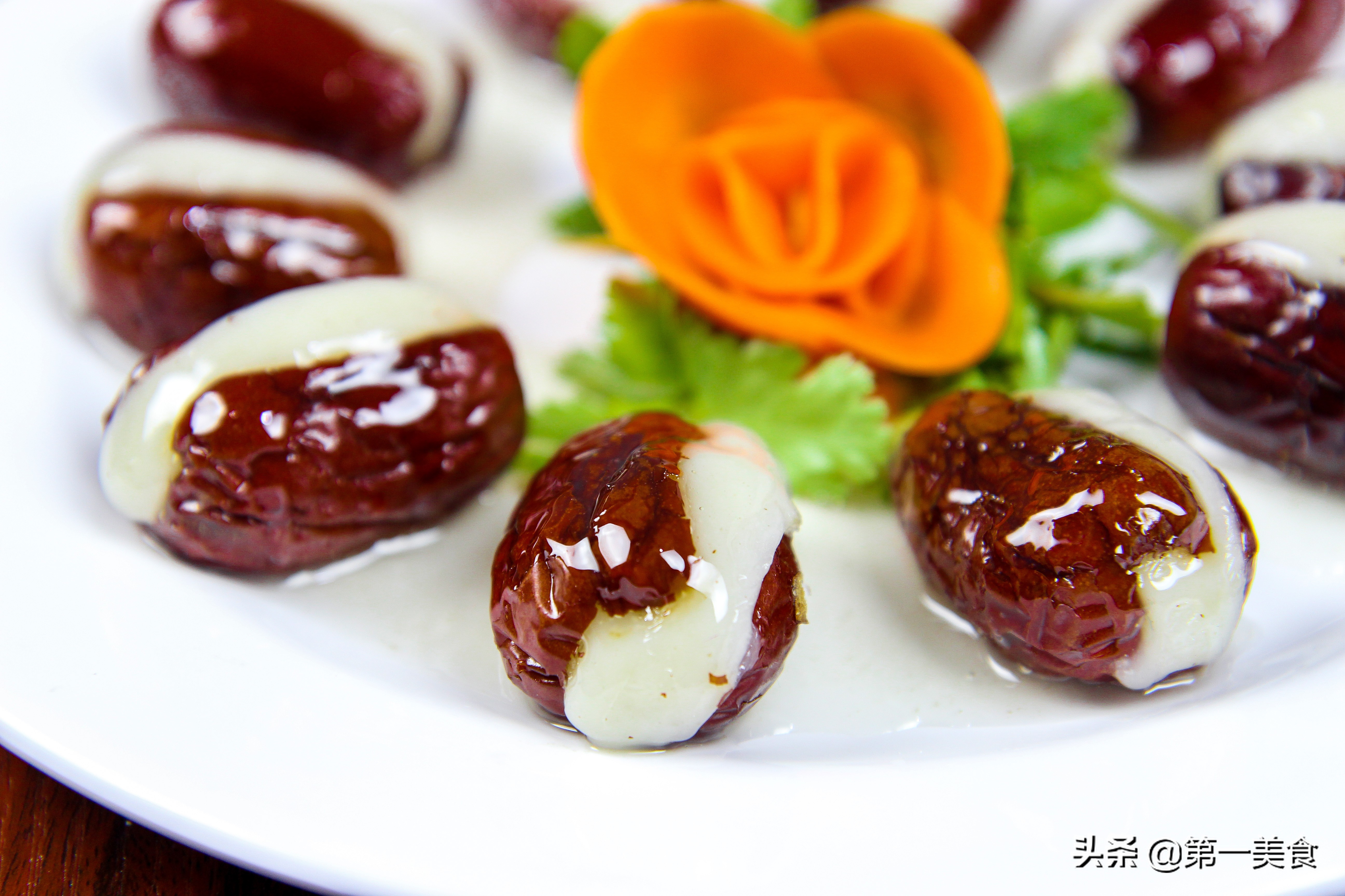 第一步:大枣洗净后在水中浸泡10分钟(这样不会太干易嚼动,也不能久泡)浸泡之后去枣核。