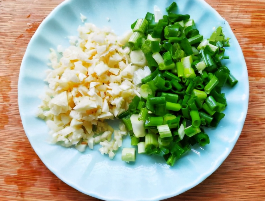 3、调味料可以根据个人的口味搭配,这款蘸汁是万能的,既能蘸着儿菜吃,亦可当作水煮鸡丝的调味,特别的开胃下饭,最后加上点生葱叶可做点缀,更加美观,但对于不喜欢吃生葱的也可以不用放,之前拌好的料汁味道够足了。