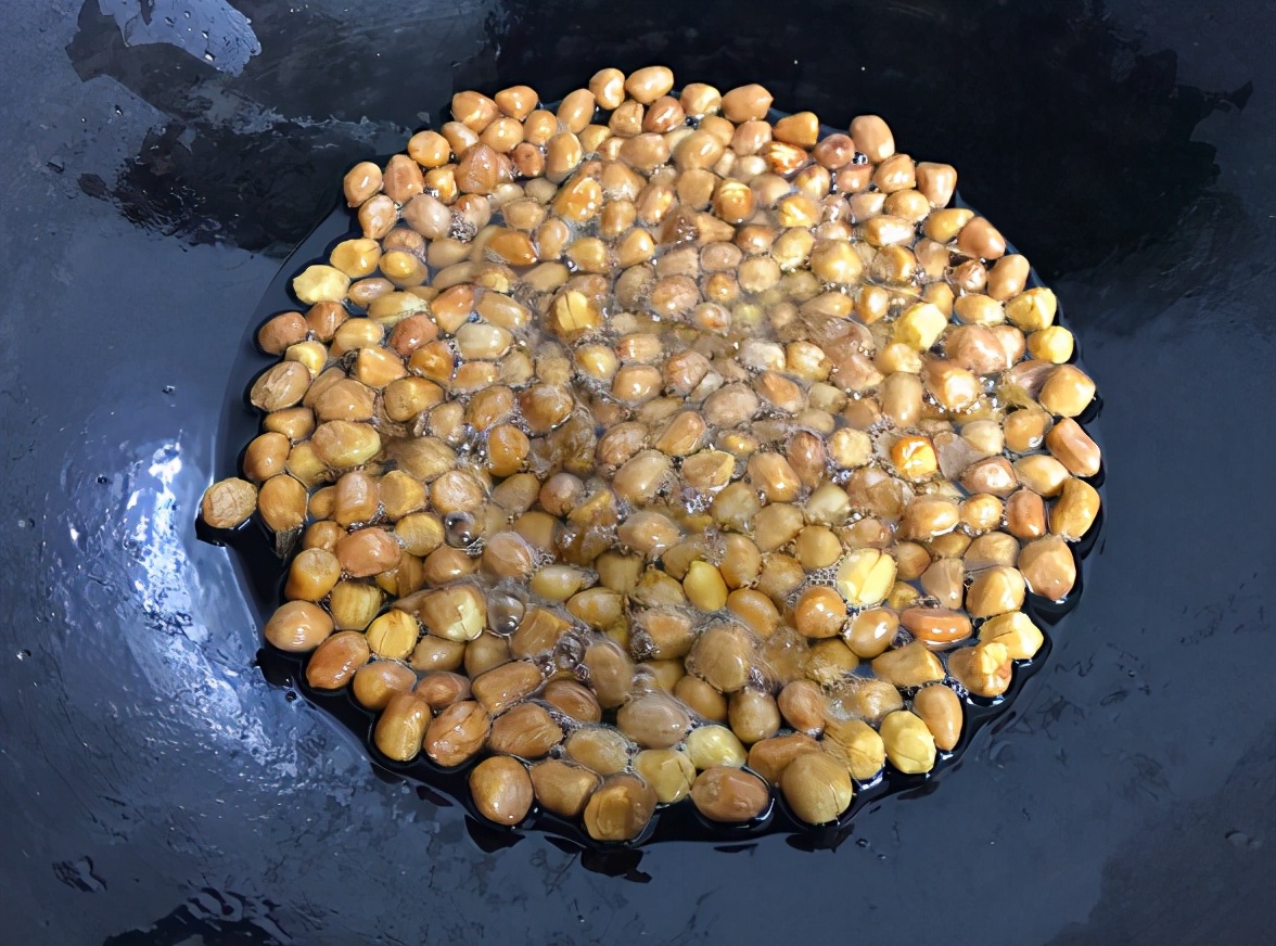 ⑴花生米不能直接炸,要先用水泡一下。