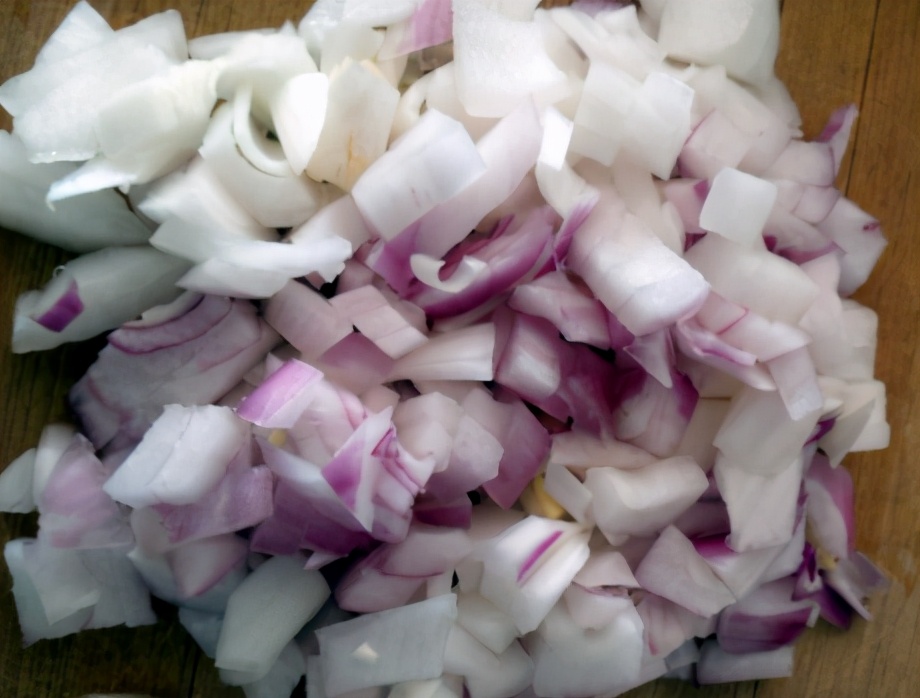 第二步,将猪肉切成丁,均匀一些,葱姜分别准备出少许,处理干净后,切碎,洋葱同样也需要切成丁,炒锅烧热后,加上少许的食用油,烧热后;
