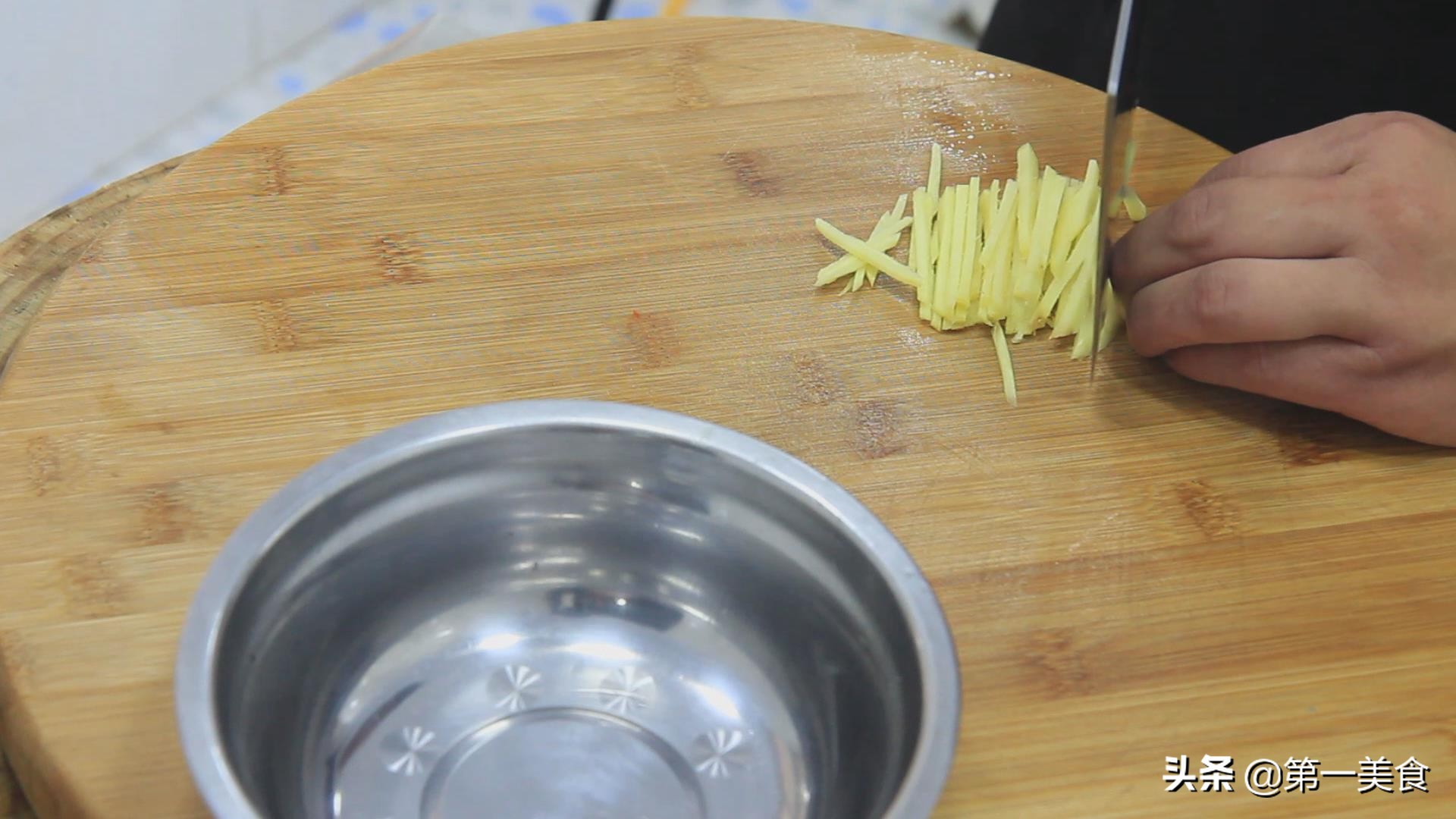 再准备生姜3-4片,切成姜丝备用。