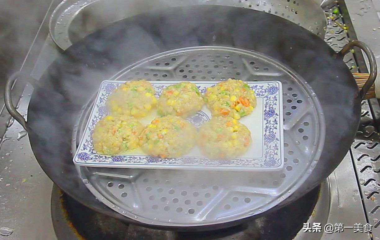 准备一个盘子,上面刷上植物油,用手把肉馅依次团好,团成厚一点的饼状摆放在盘里,水烧开后,放在篦子上蒸15分钟。