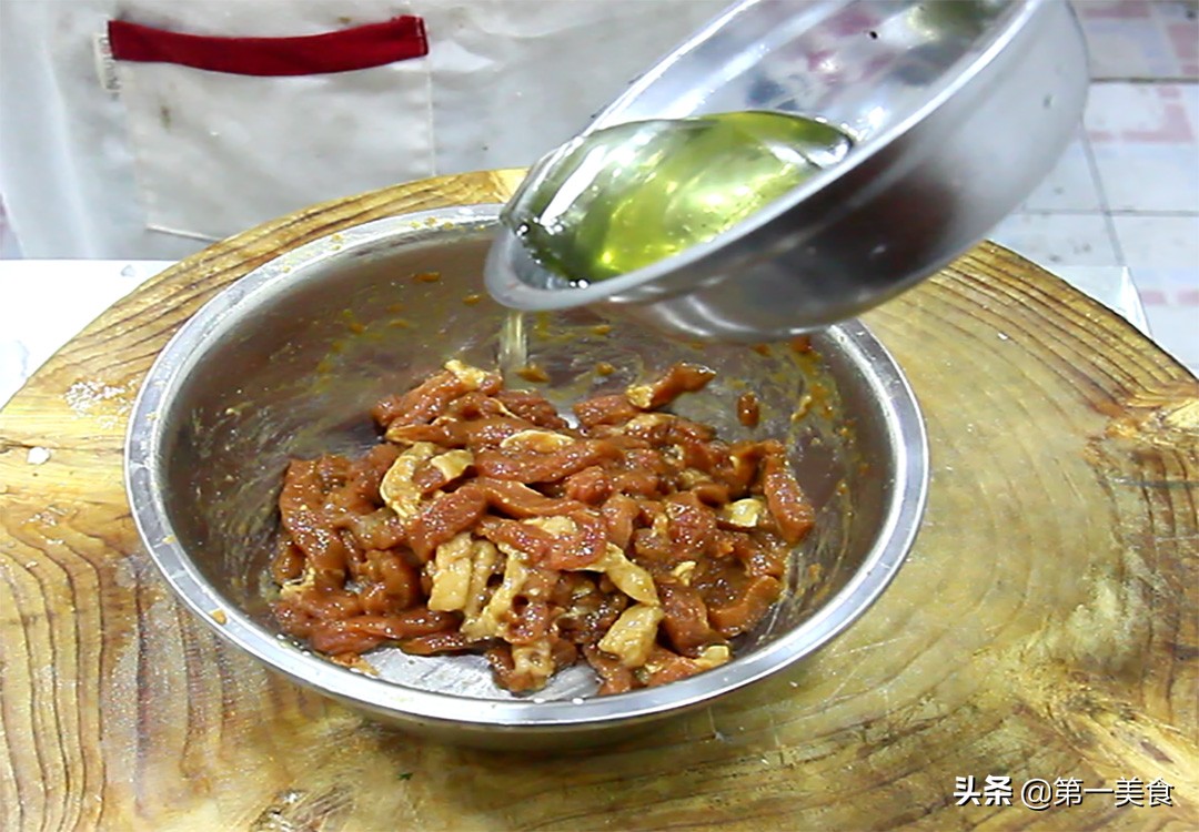 最后加入一点植物油,进一步锁住牛肉的水分,又可以防止牛肉在油炸过程中粘连。
