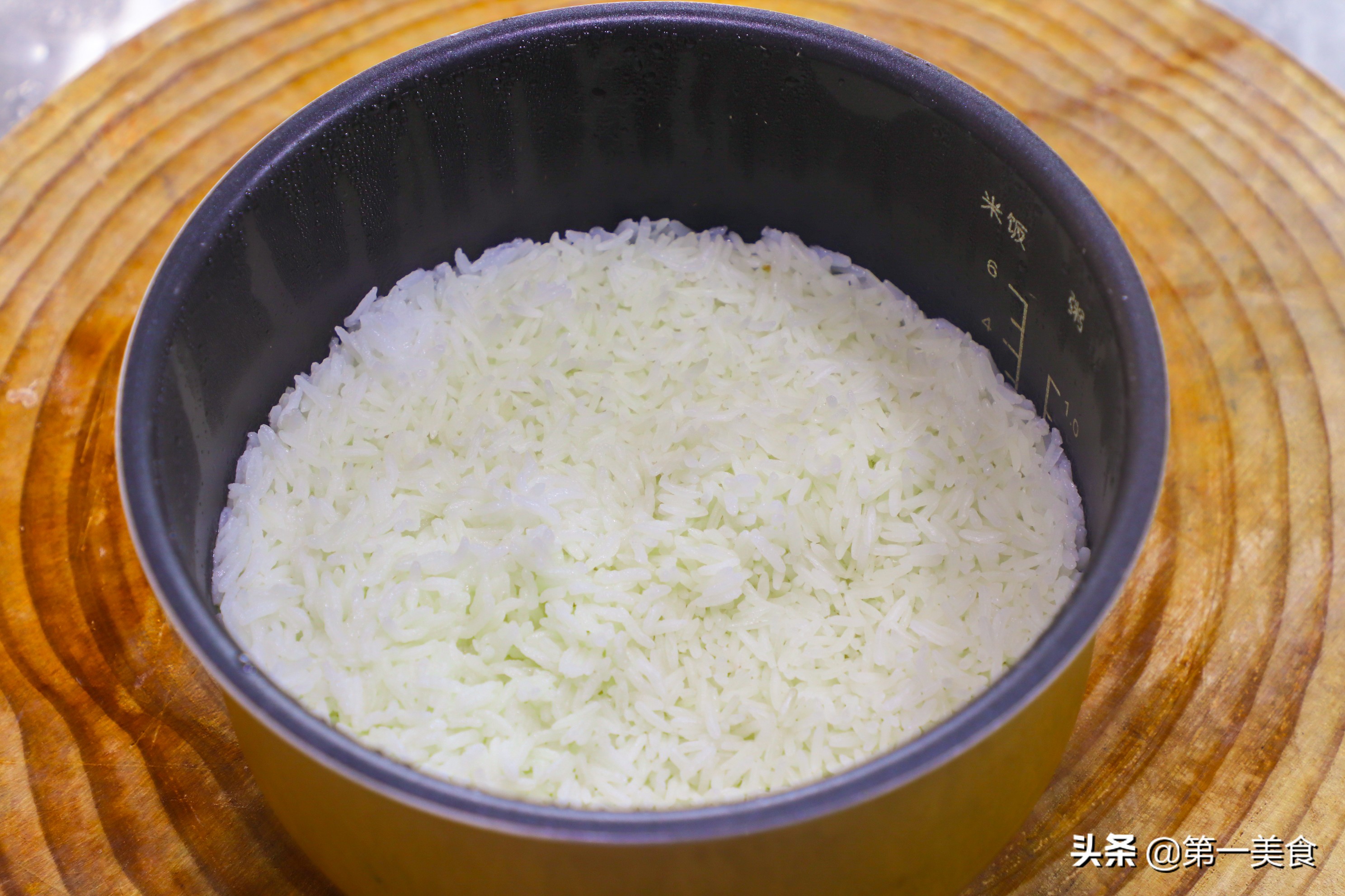 首先我们准备大米300克,倒入电饭煲中加入适量的清水,洗净大米表面的杂质,把淘米水倒掉重新加入清水,水量以没过大米1厘米为宜,这样蒸出来的大米非常饱满,不会发硬或者发粘口感最好,用精煮饭模式把大米蒸熟。