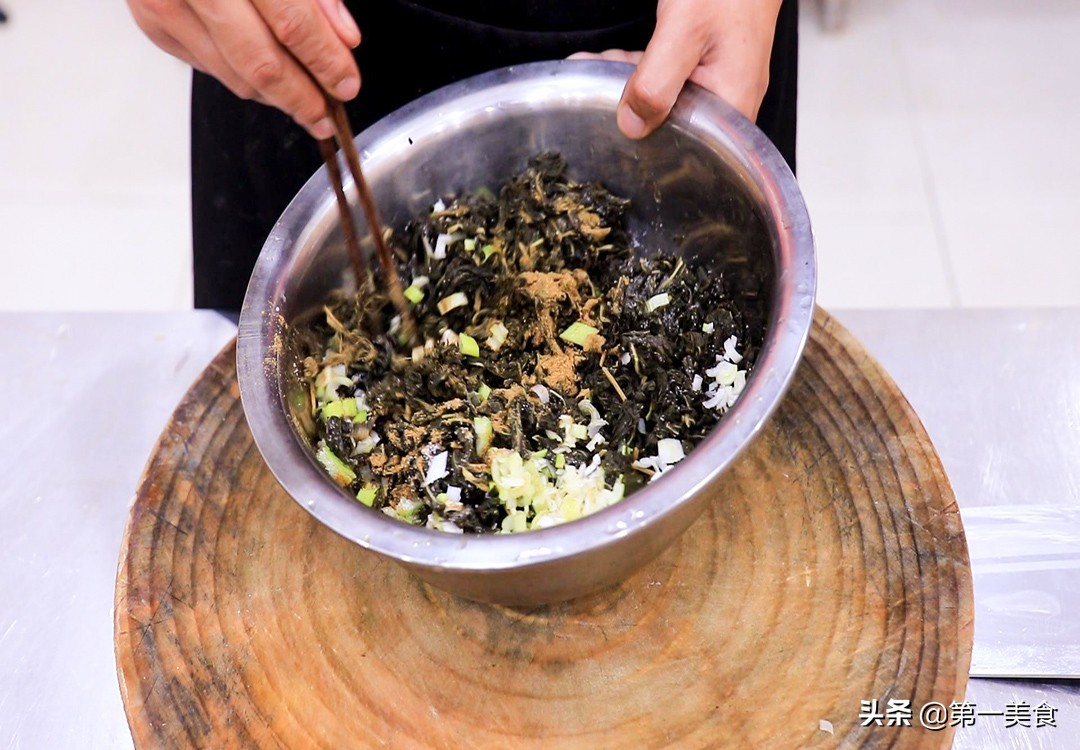 首先,我们把晒干的芝麻叶放在清水中浸泡两三个小时,把它泡软,着急吃的话,用温水泡半个小时就可以了,芝麻叶泡软以后,用清水反复的抓洗,一直洗到水很清澈才可以,不然吃的时候会有苦涩味,然后把芝麻叶上的水分挤干净再切成小段备用。