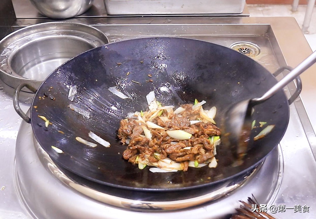 3.羊肉先炒至断生,再和葱段一起炒,能够充分吸收葱的香味,也不会炒老。