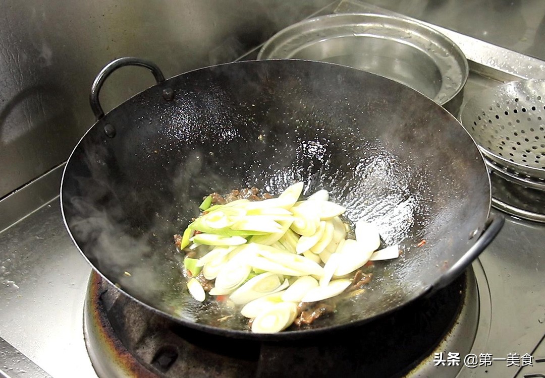 2.大葱下锅炒至断生即可,炒的时间太久,香味会散失,葱香味不够浓郁。