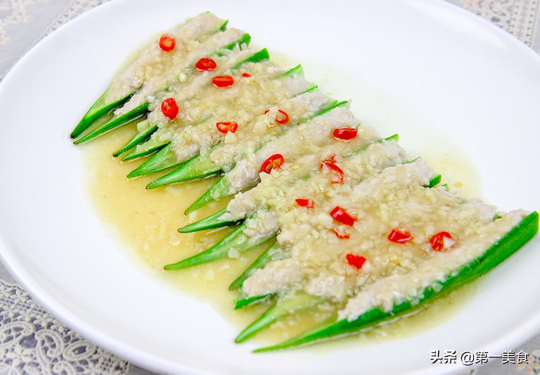 好了,一道简单又清淡的蒜蓉秋葵塞肉就做好了。