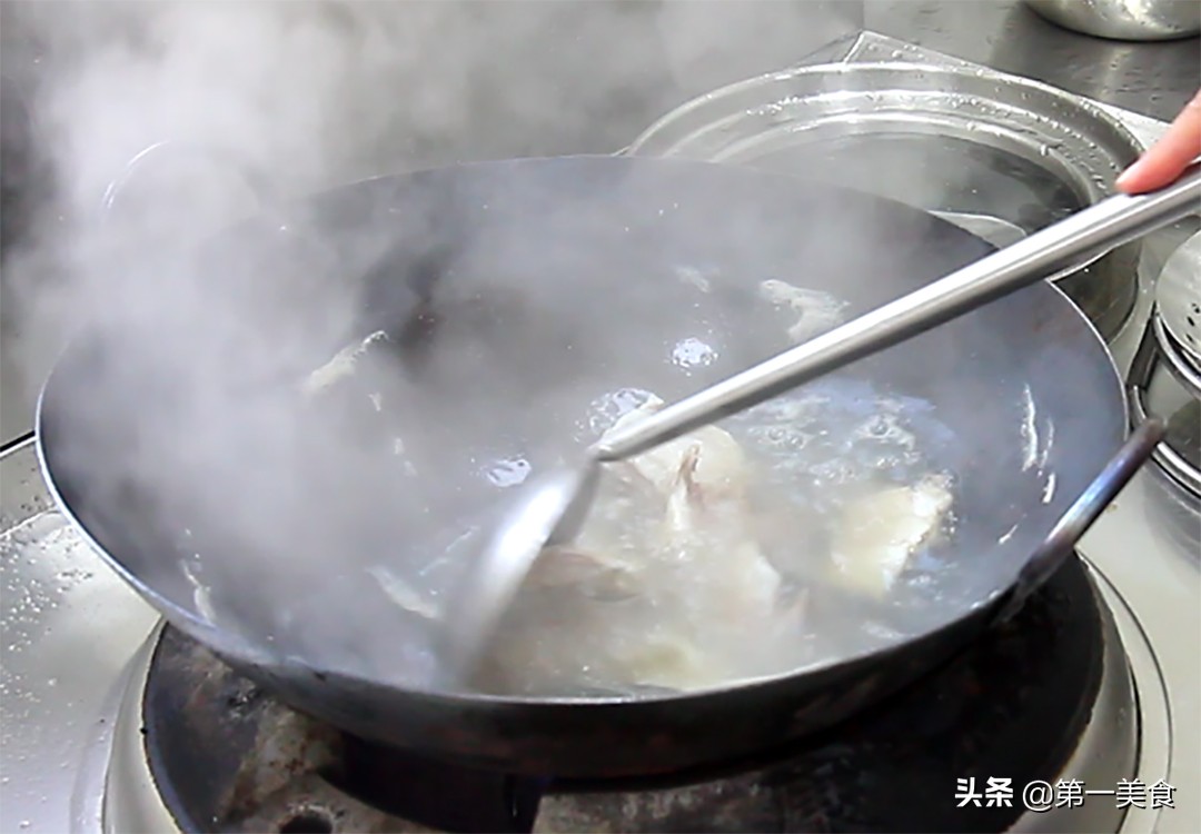 6.下面把鱼头、鱼骨焯一下水