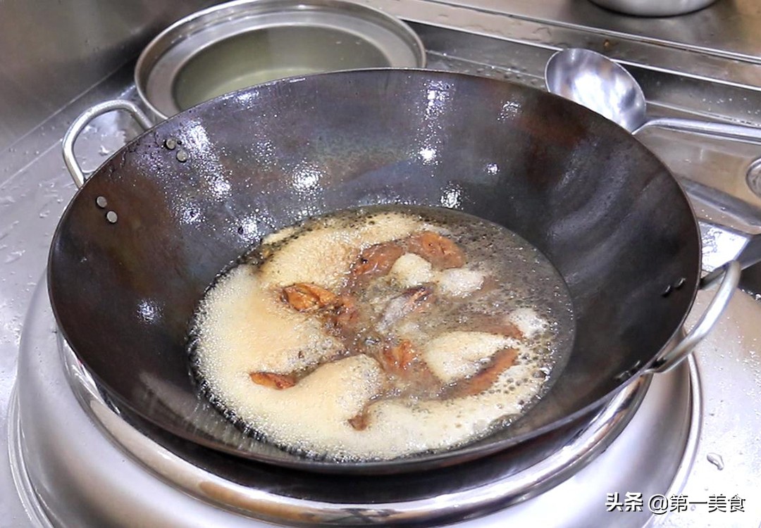 锅内烧油,充分滑锅以后,倒出热油加入凉油,热锅凉油能防止煎鸡翅时粘锅,把鸡翅依次放入锅中,轻轻晃动锅防止糊底,全程用小火大约煎3分钟,鸡翅两面都煎成金黄色,把锅中的鸡油倒出来,这样吃起来香而不腻。