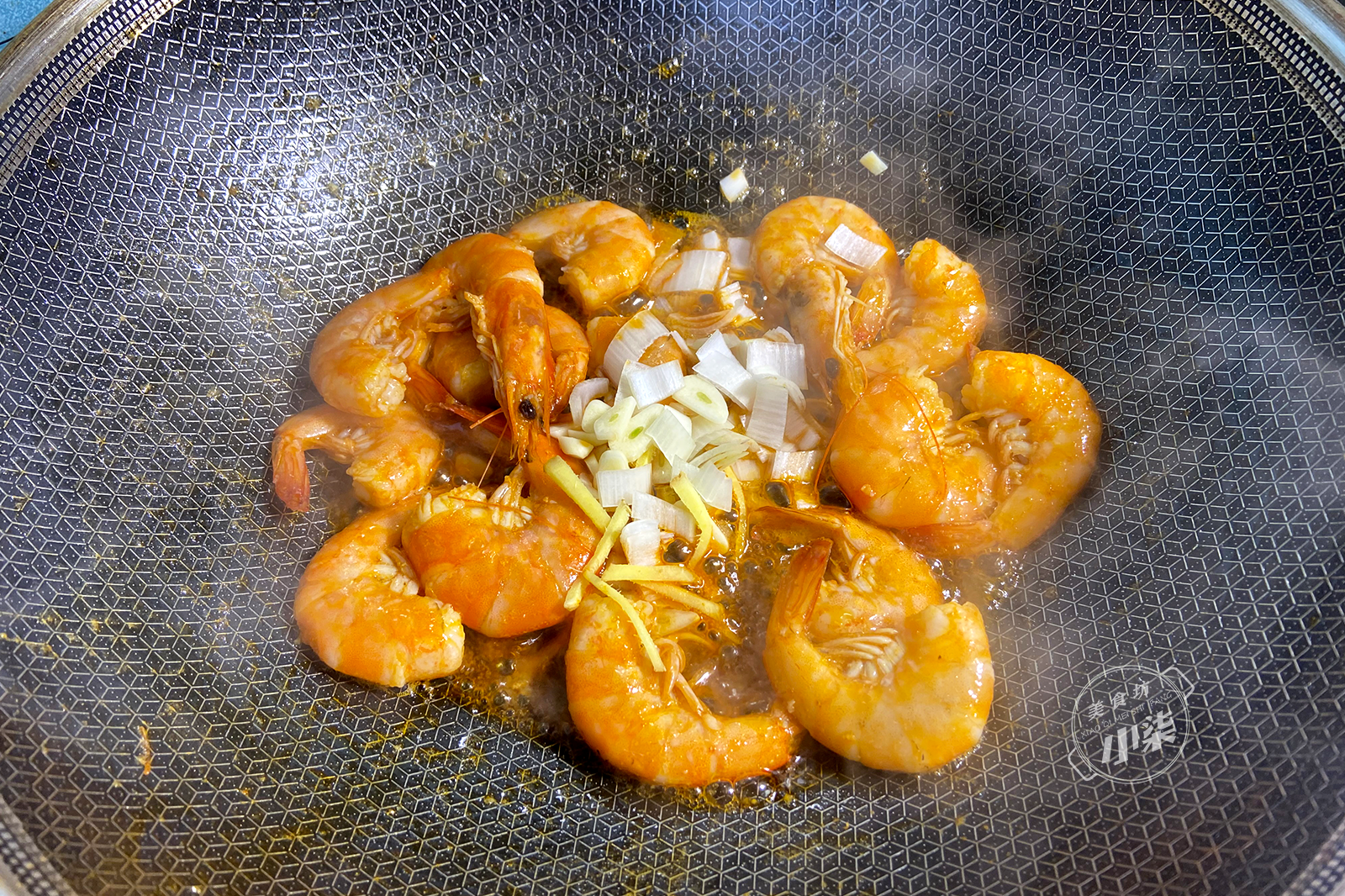 炖这道菜不要急,慢慢炖,越炖越入味,越炖越鲜美,打开锅盖真的是太香了,出锅前调味,加入 一勺盐,翻炒均匀就可以了,其它的调料不需要加,加了之后就会破坏大虾的鲜美,然后就可以装盘了,最后撒一点葱花点缀。