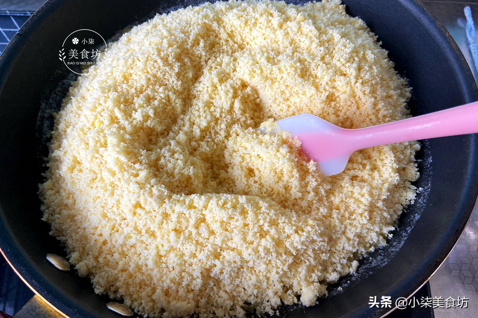 第七步:锅里加入80克白糖,50克奶粉,我加的糖甜度适合大众口味,如果不喜欢吃太甜的可以少加,加奶粉吃起来有淡淡的奶香味。