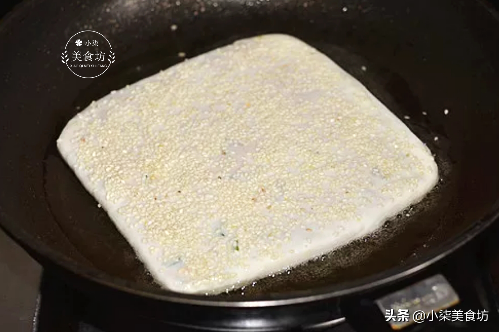 3、煎的时候要用小火盖上锅盖,二面煎至金黄就熟了。