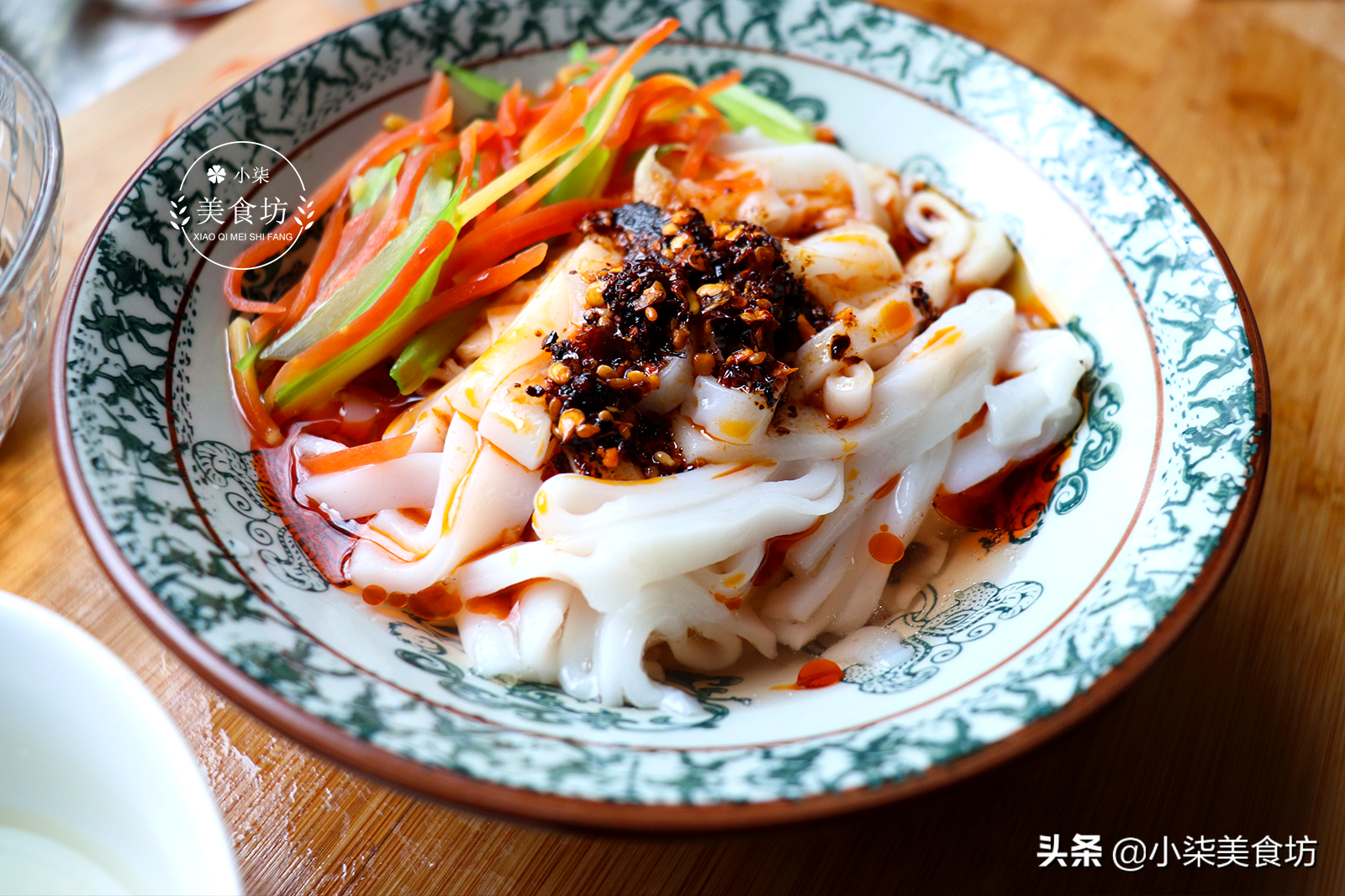 我们的米皮就可以开吃了,筋道爽口,超级好吃,自制米皮就做好了。