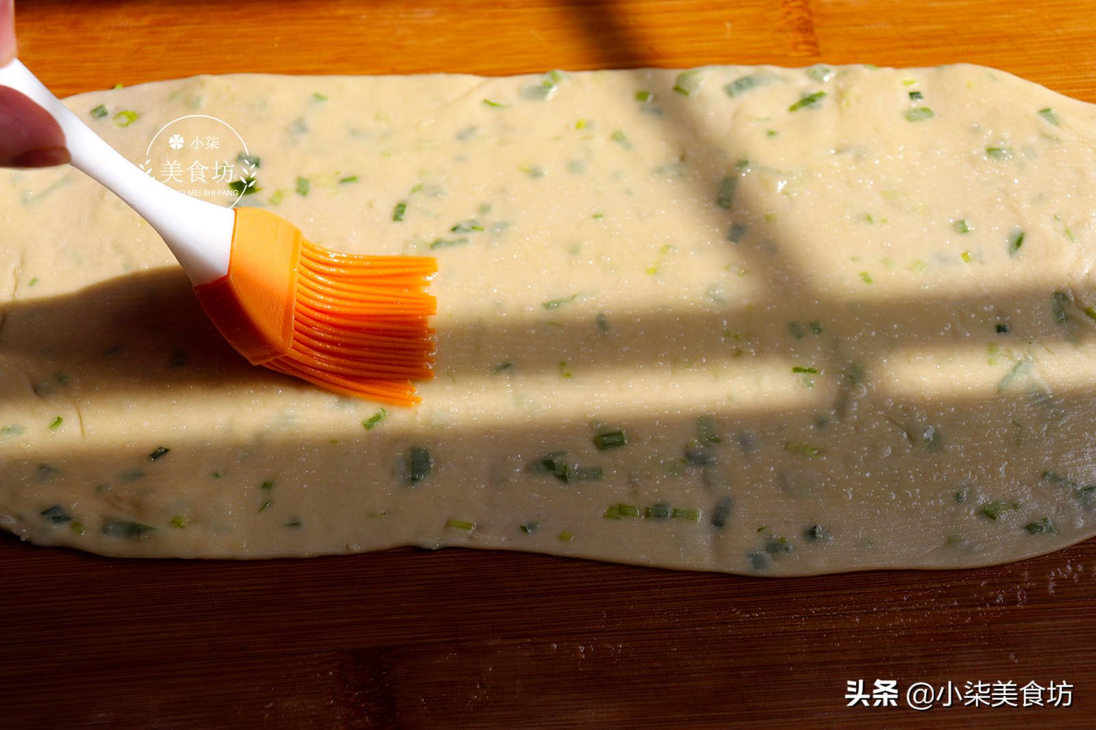 主要材料:鸡蛋2个,细葱一把,面粉300克,盐2克,温水少许。油酥:面粉1大勺,熟油2大勺,盐少许。