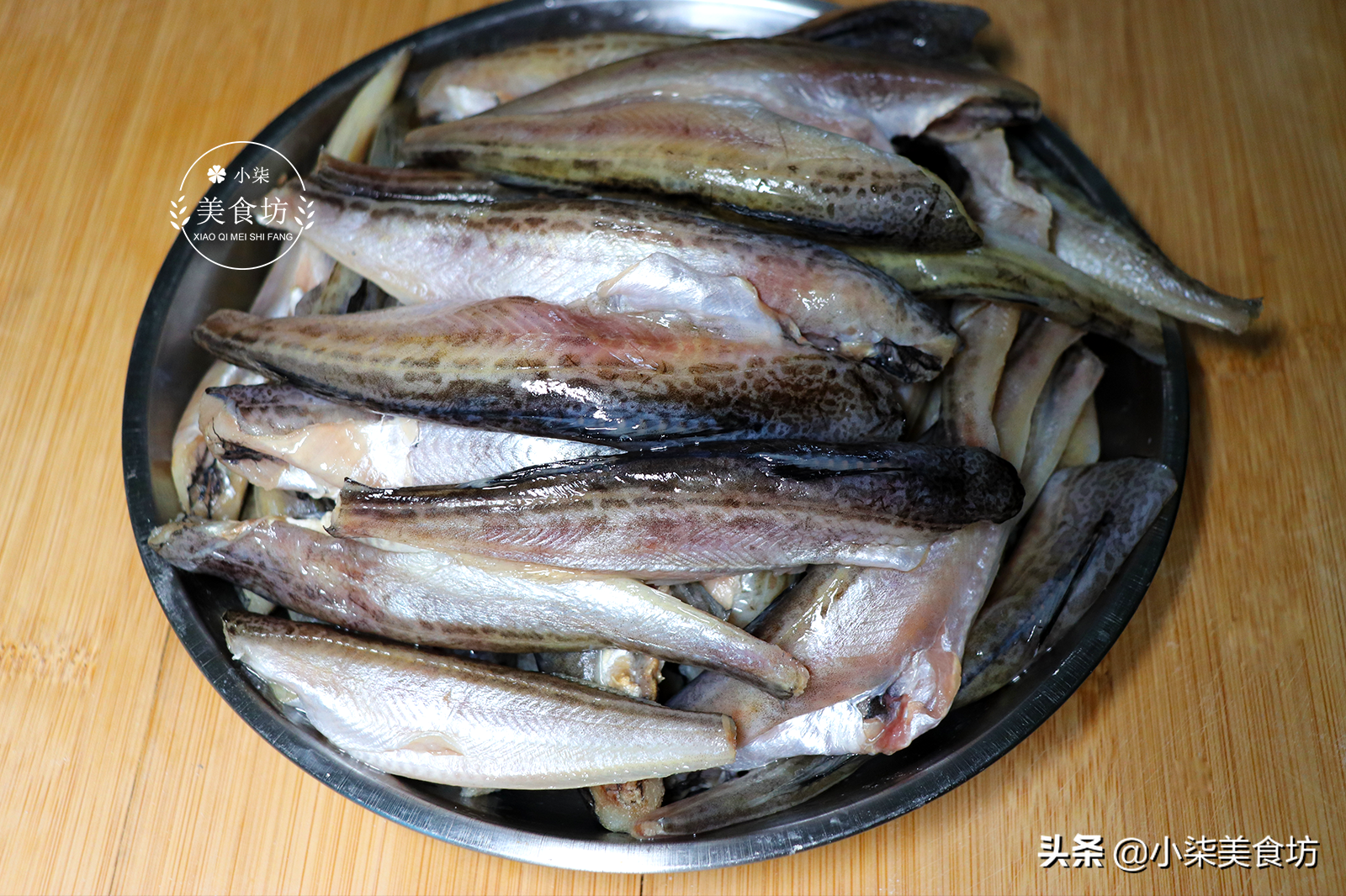 第一步:买回来的雷鱼是去掉头和尾的,据说这种鱼产自朝鲜半岛,刺少。把鱼放清水里洗净,一定要把鱼肚子里面的黑皮去掉,洗净后控干水分,最好不带水。