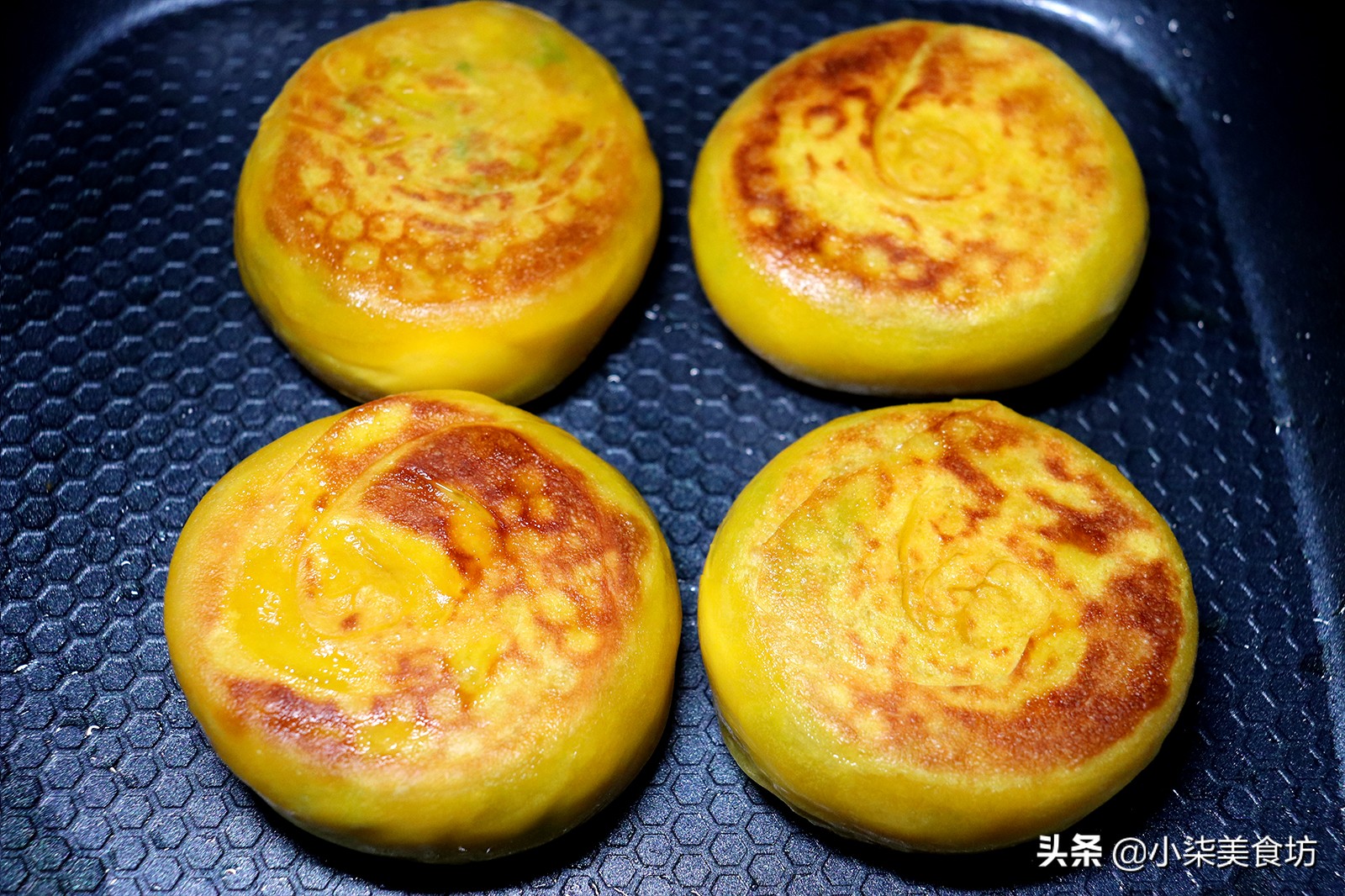 以上做法请你参照,馅料可以根据自己喜欢的调制。用南瓜汁和的面能吃到南瓜的香甜,做的饼颜色金黄非常有食欲。面醒的时间长延展性越好,饼皮吃起来酥脆。