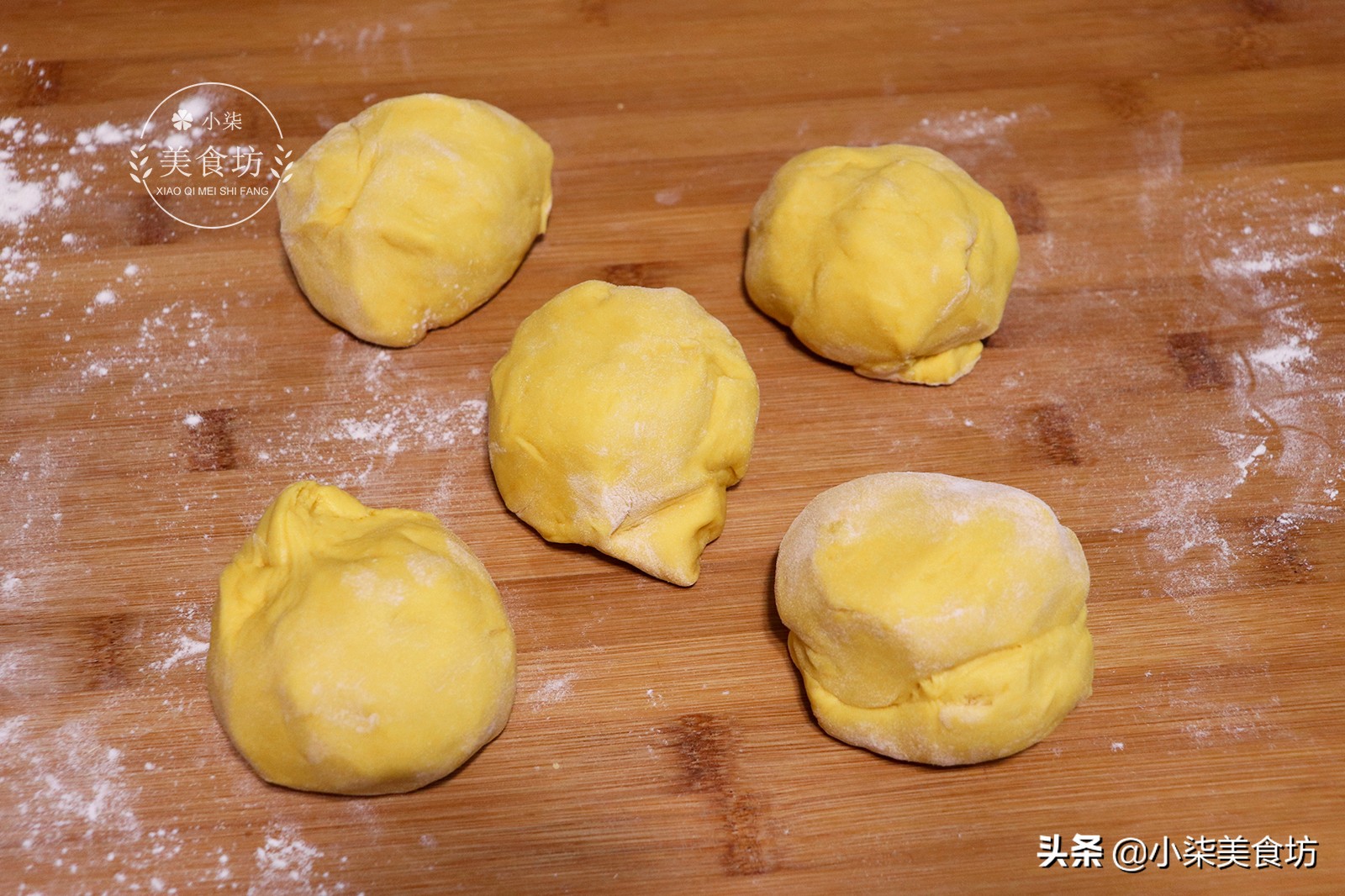 4、南瓜和面的时候很容易粘手,可以在手上抹点干面粉,这样和的时候就不会粘了。