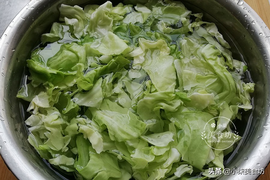 第四步:包菜的叶子浸泡10分钟,再抓几下,捞出沥干水分。