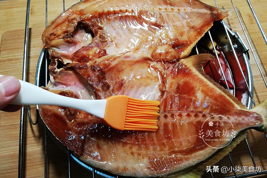 4、腌好的鱼放在架子上,控下水,再上下面刷上植物油,起到锁住鱼肉水分的作用。