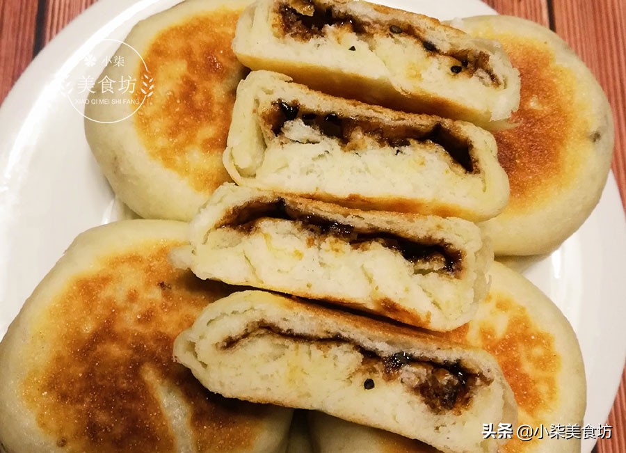 马上就要过年了,嘴一天比一天馋,家里没有烤箱,可是想解馋,怎么办,用平底锅也一样做出层次分明的饼。里面装的馅可以根据自己喜欢的放,红糖、红豆沙、白糖、其它肉馅都可以。我做的是红糖馅的,天冷吃点红糖暖暖的。下面是详细制作步骤,喜欢吃的亲们不妨在家也试试吧~