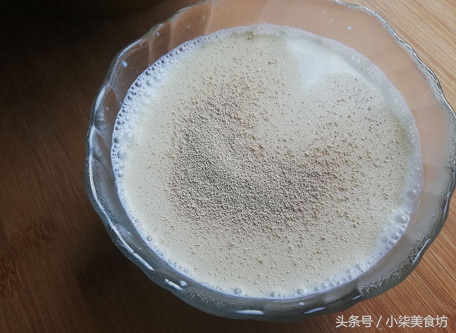 2、加热的牛奶不要超过40度,否则会被把酵母烫死,就不能发酵,牛奶可以选择大牌纯牛奶,更纯正,放入酵母粉和牛奶融合。