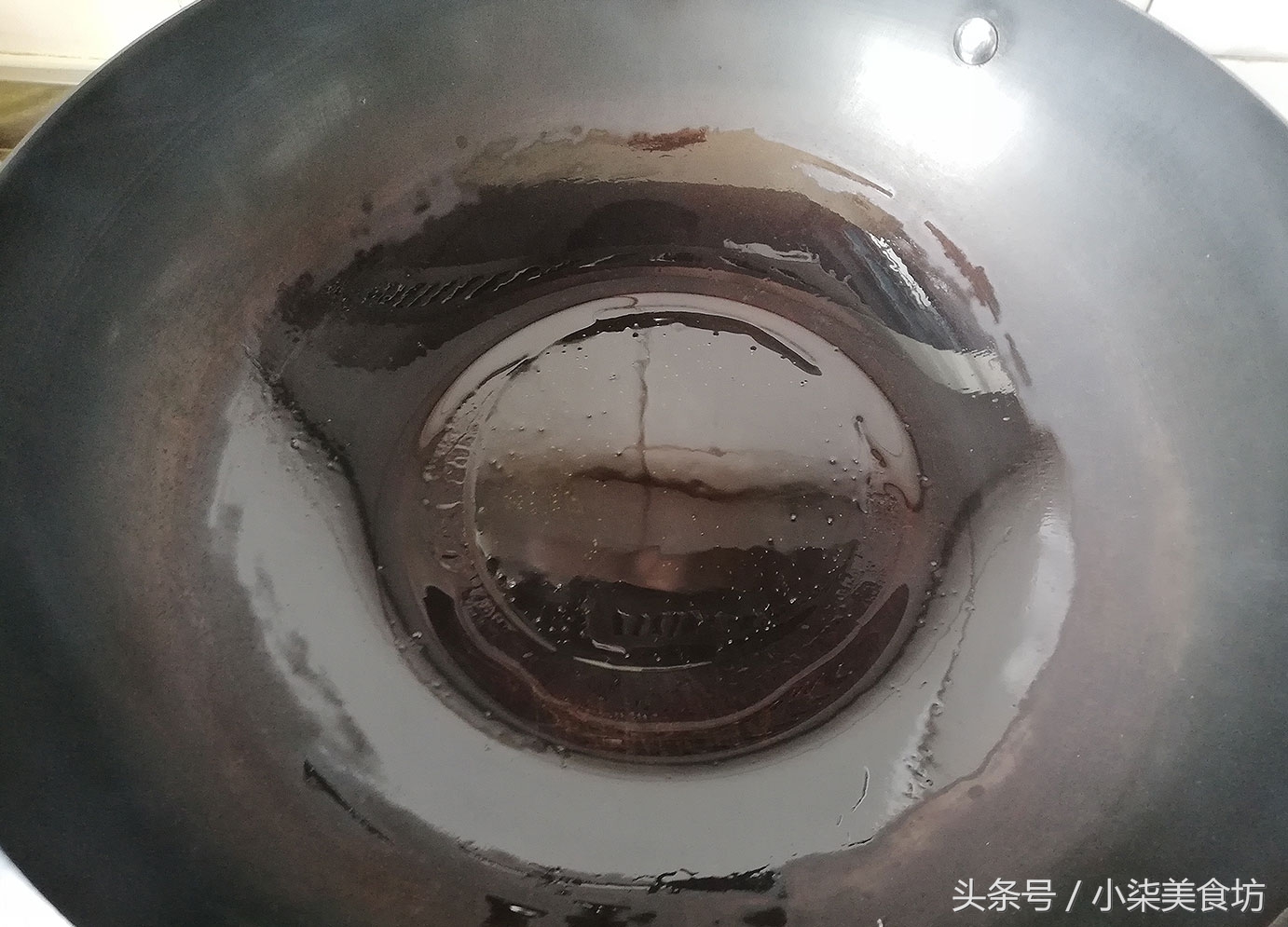 5、起锅,锅内倒入适量油,转动炒锅,油均匀的沾在锅里,油烧倒出,再加入凉油,这样就是热锅凉油。