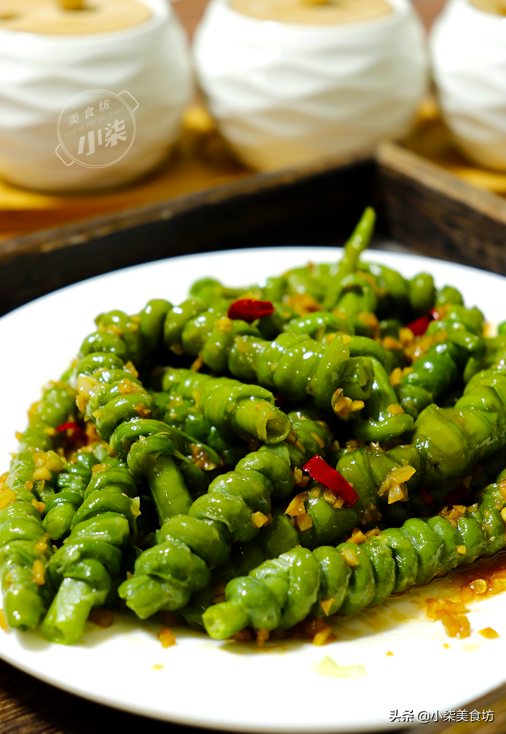 豇豆的做法有很多种,大多数人买回来豇豆都会炒着吃或者做包子馅,其实豇豆除了炒着吃,还可以凉拌着吃,我认为豇豆凉拌着吃才是最美味的食材。买回来的豇豆长条状,洗干净再把两头去掉,再用开水焯几分钟,撕成两半缠成螺纹状,搭配上蒜蓉,摆在桌子上,有着奇特的外观,家人都会好奇,免不了品尝,清脆的外形,看着很有食欲,一口一根,清凉解渴,喜欢的朋友一定要试一试,下面是详细做法,请参考。