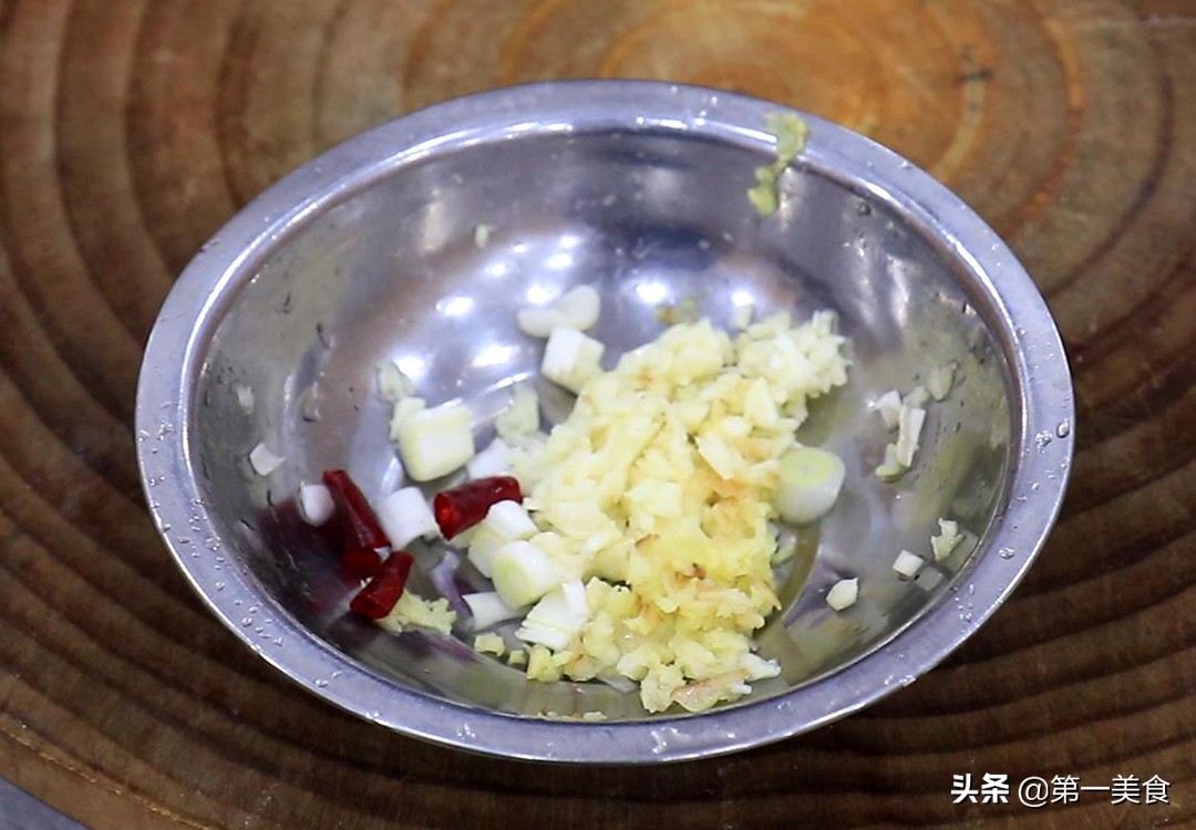 全部放在一起,再放入几粒干辣椒备用。
