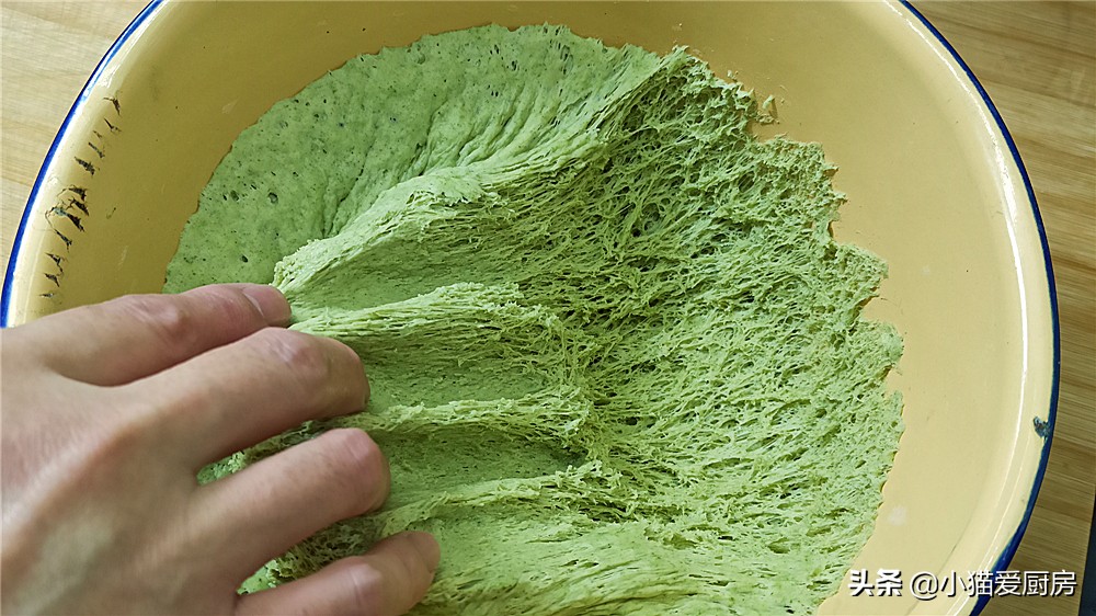 (3)发面稍微和干一点,要是太软的话,做出来的青团容易塌陷。