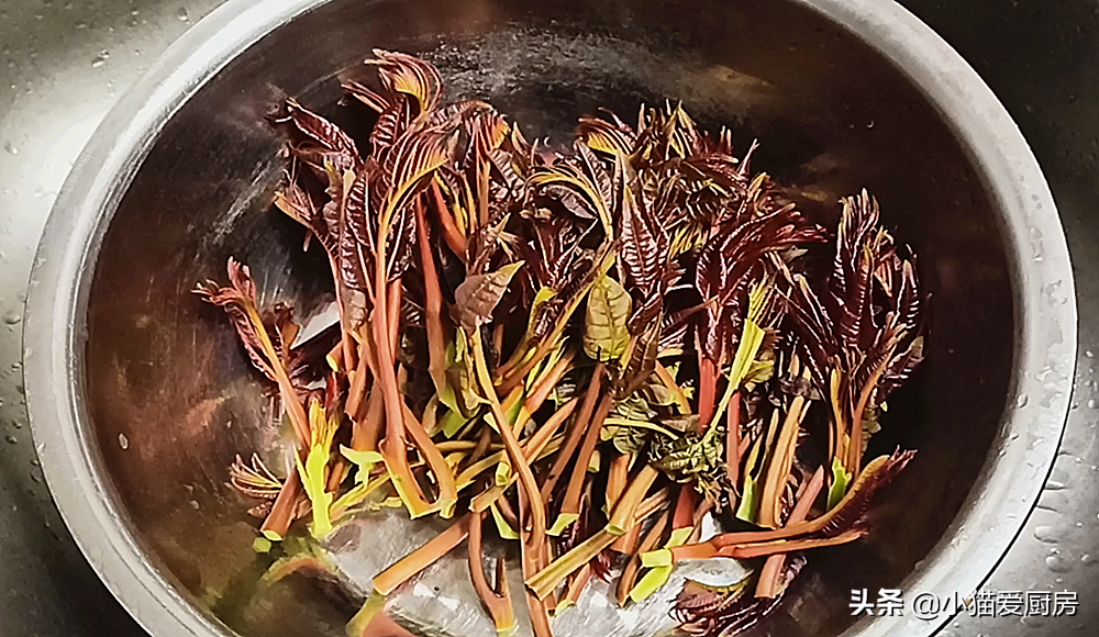 (3)因为香椿芽亚硝酸盐含量比较高,所以一定要焯水,把亚硝酸盐焯去,但是焯水的时候要放一点盐和几滴植物油,可以让香椿芽口感更好。