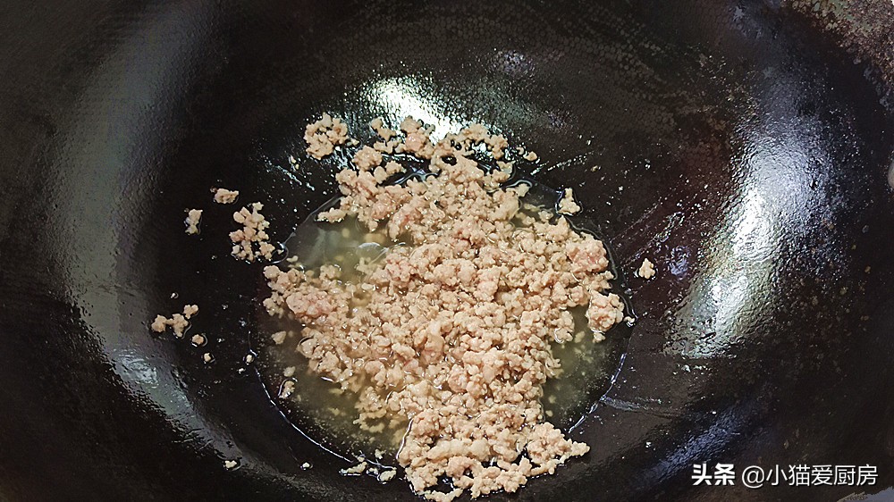 (3)肉末不要剁得太细,太细口感不是太好,炒的时候要冷油下锅,主要是防止粘锅。