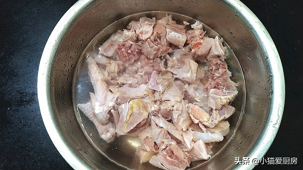 (2)要是新鲜鸡肉的话,不用焯水,直接炖,味道更香,但是要用盐水泡制,把血水充分泡出来,减少腥味。