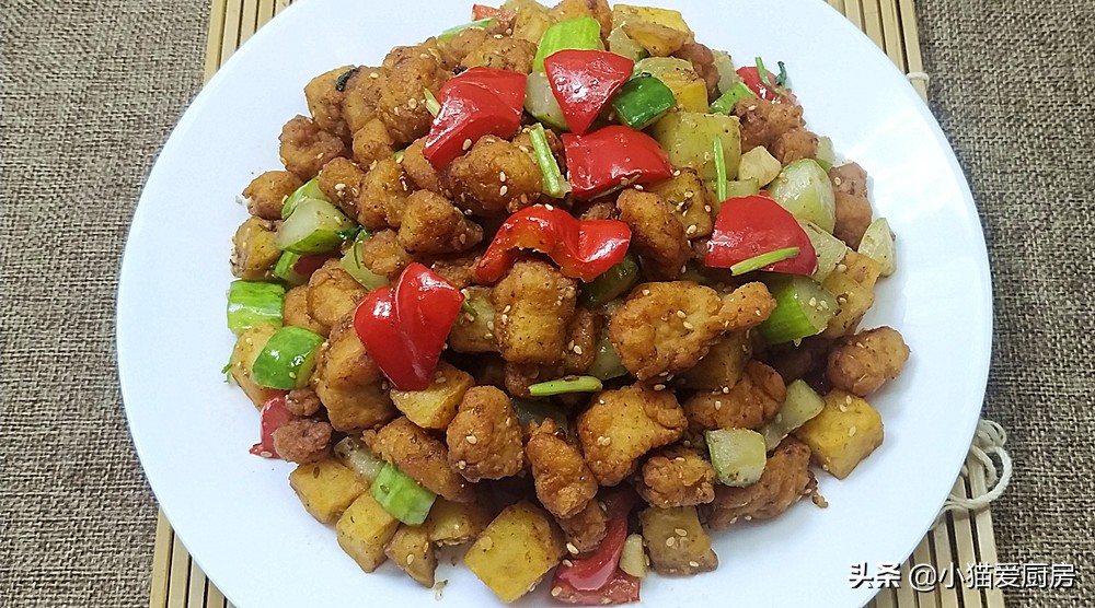 嗨@大家好!我是“小猫爱厨房”的小猫,今天又和大家见面了,分享生活、分享美食、分享快乐!今天小猫给大家带来的是一道“香辣鸡胸肉炒三丁”的做法,这是一道口感酥脆,味道香辣的菜特别开胃下饭的菜,大家要是喜欢吃辣的话,可以试一试,要是觉得有用,麻烦帮忙点赞和关注一下,小猫万分感谢!