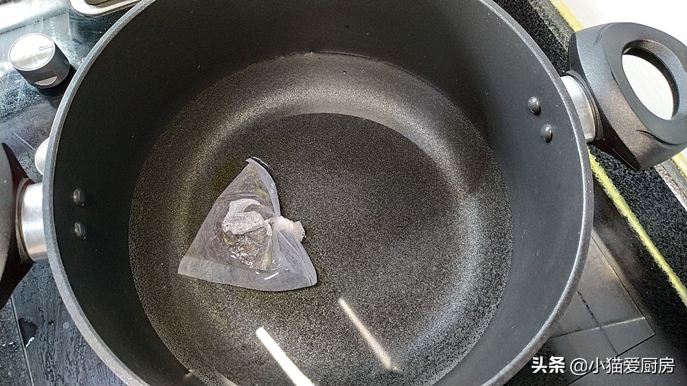 【步骤三】:红茶煮好后,关火把茶包捞出来,然后等红茶变凉,大家也可以把茶包放里边泡着,可以增加茶水的浓度。