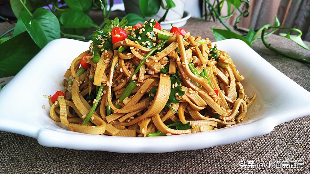 以上内容是我和大家分享的“凉拌卤水豆腐干”的做法,希望对大家有所帮助 今天就和大家分享到这儿。欢迎大家关注“小猫爱厨房”进行保留,我会每天都会为您更新美食做法和技巧,如果您有任何的意见或建议都可以在下方评论和我互动,小猫万分感谢,如果您喜欢小猫的分享,就转发+收藏+点赞支持一下吧!您的每一个赞,都是小猫继续努力的动力!感谢支持,感恩陪伴!我们明天再见!