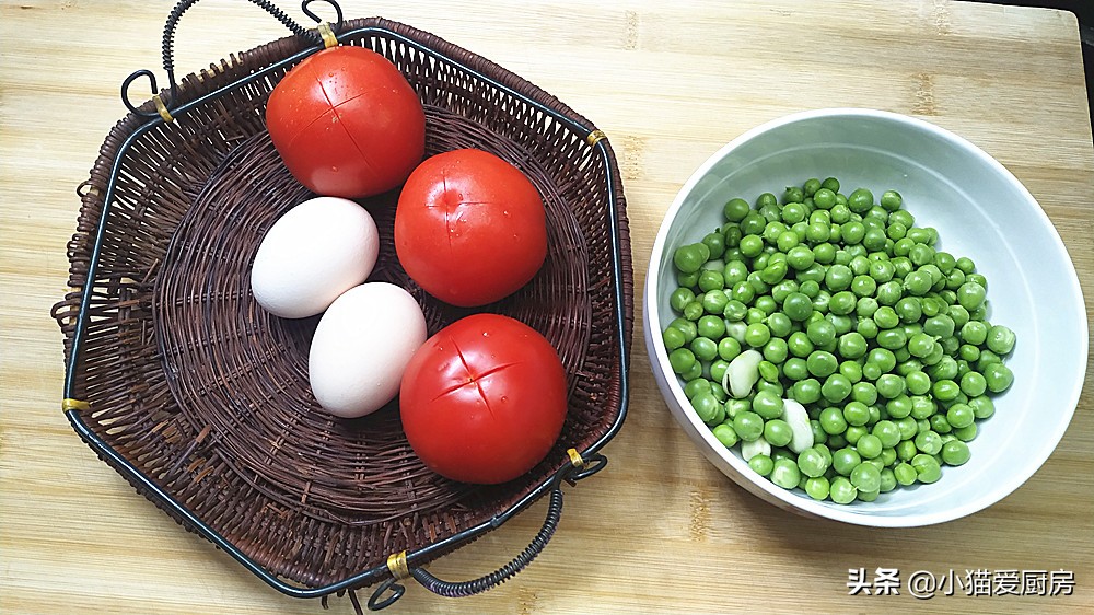 【制作主料】:青豌豆500克、西红柿3个、鸡蛋2个