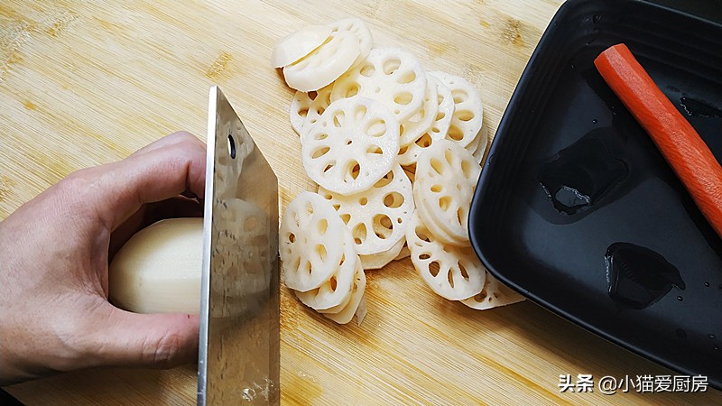 在全是肉食的餐桌上,一份清淡的菜可以激发人的食欲,打开胃口让你吃得香。清凉爽口的菜也就更受欢迎了,随着人们的生活水平越来越好,大鱼大肉已经成为很平常的事情,而对于这种情况,人们反而更加喜欢清淡可口的素菜,毕竟更加的健康,这次要分享给大家的这道没有一点油的“泡藕片”是一道酸甜口味略带辣味的菜,是用莲藕经过焯水在加上胡萝卜一起做的(用胡萝卜主要是马上过年了,胡萝卜寓意“红红火火”,这是我们中国人的习俗,“红红火火过大年”讨个吉利),经过醋和糖加上泡辣椒浸泡而成,莲藕的这个做法虽然很简单,但口感却一点不比热菜差,下面我便将泡藕片的做法详细分享给大家。