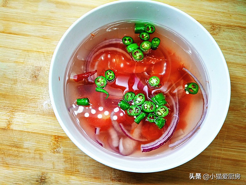【制作调料】:白色的香醋50克、白糖20克、泡辣椒水150克(也可以用野山椒水)、泡辣椒3-4个(野山椒也可以)、盐3克、凉开水500克