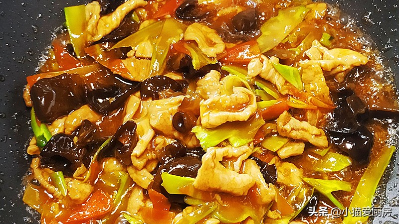 (3)肉片放入蛋清和淀粉腌制后可以让肉片滑嫩好吃,最后放一点油可以让猪肉片不粘连,下锅后不要大火,用小火滑散,大火容易粘锅。