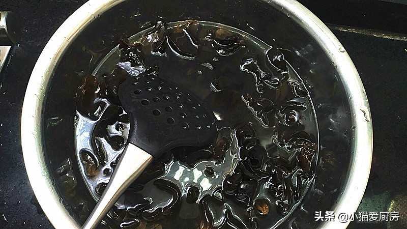 (4)我们给木耳焯水时间不应太长,1-2分钟左右即可。而且要迅速过凉水。
