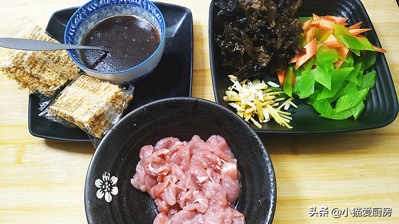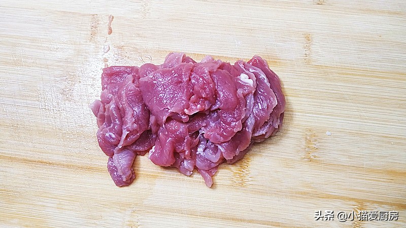 【步骤一】:我们先把木耳放入温水中泡发后洗净备用,然后把里脊肉洗净然后切成厚约1毫米,大小3-4厘米的左右的片。
